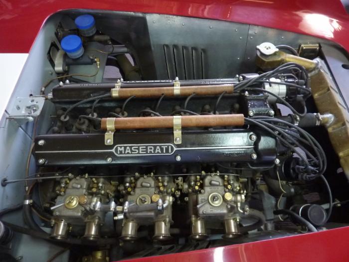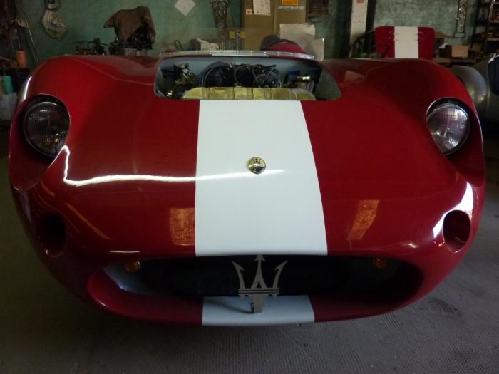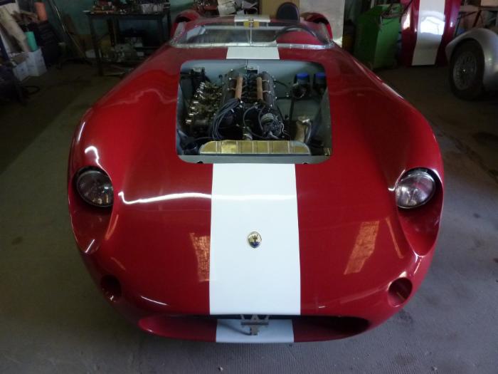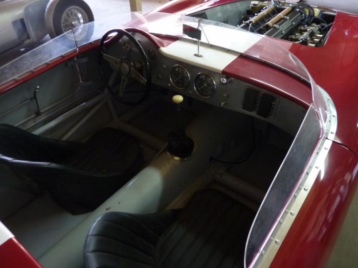 Thats a very interesting car, the car is actually a complete Sebring car just with a 450S Aluminium Body. So everything on the car is Maserati and Matching number to the Sebring Title. It has a longer wheelbase then a normal 450s but therefore it will suit driver with 190cm+. Body Aluminium, Engine 4.0L 6 zylinder, Gearbox Matching Number Sebring, Frame Maserati Sebring, Leather Red. Car can also be fittet with Borrani wheels.